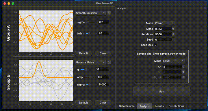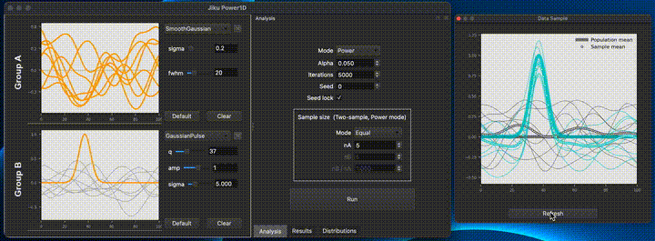 Power1D is a tool for conducting power analysis on continuous 1D datasets (time series, motion curves, biomechanical signals, etc.). Supports sample size analysis, and effect construction and visualization.